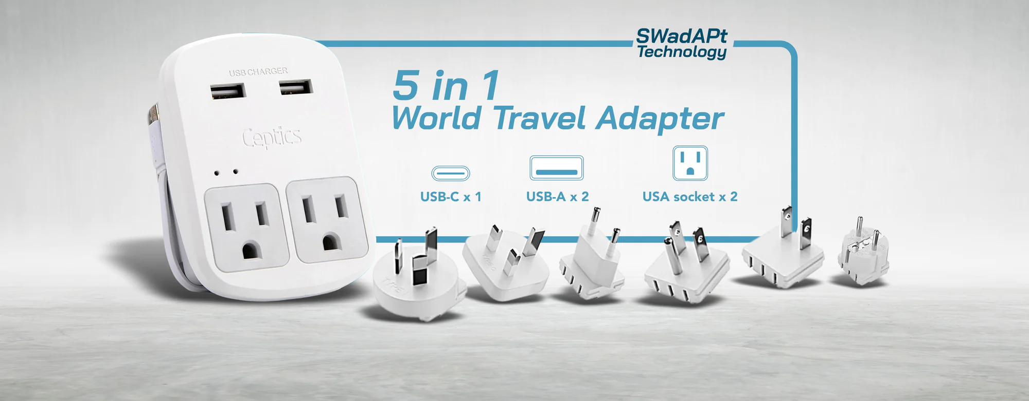 Universal travel adapter – 1 universal input & 1 N. America/Japan input – 2 in 1 travel adapter – CE & RoHS certified