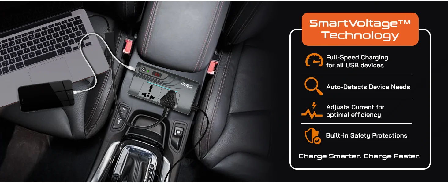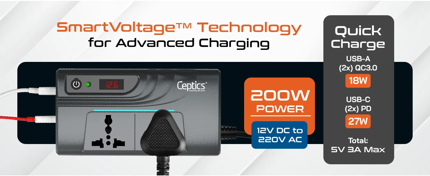 200W car inverter – 2 AC outlets & 2 USB-A & 2 USB-C – Cigarette lighter plug – CE & FCC certified - PI-200M 200W car inverter – 2 AC outlets & 2 USB-A & 2 USB-C – Cigarette lighter plug – CE & FCC certified - PI-200M