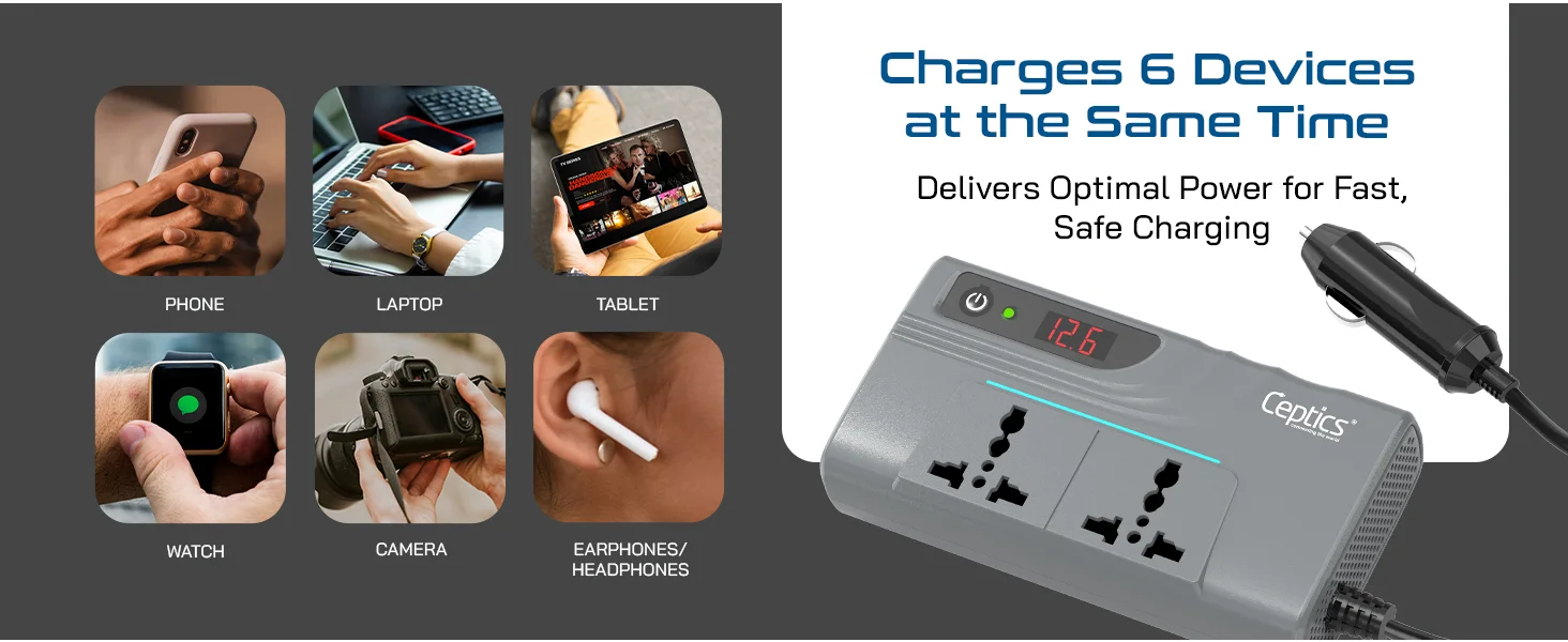 • Charge 6 devices at once