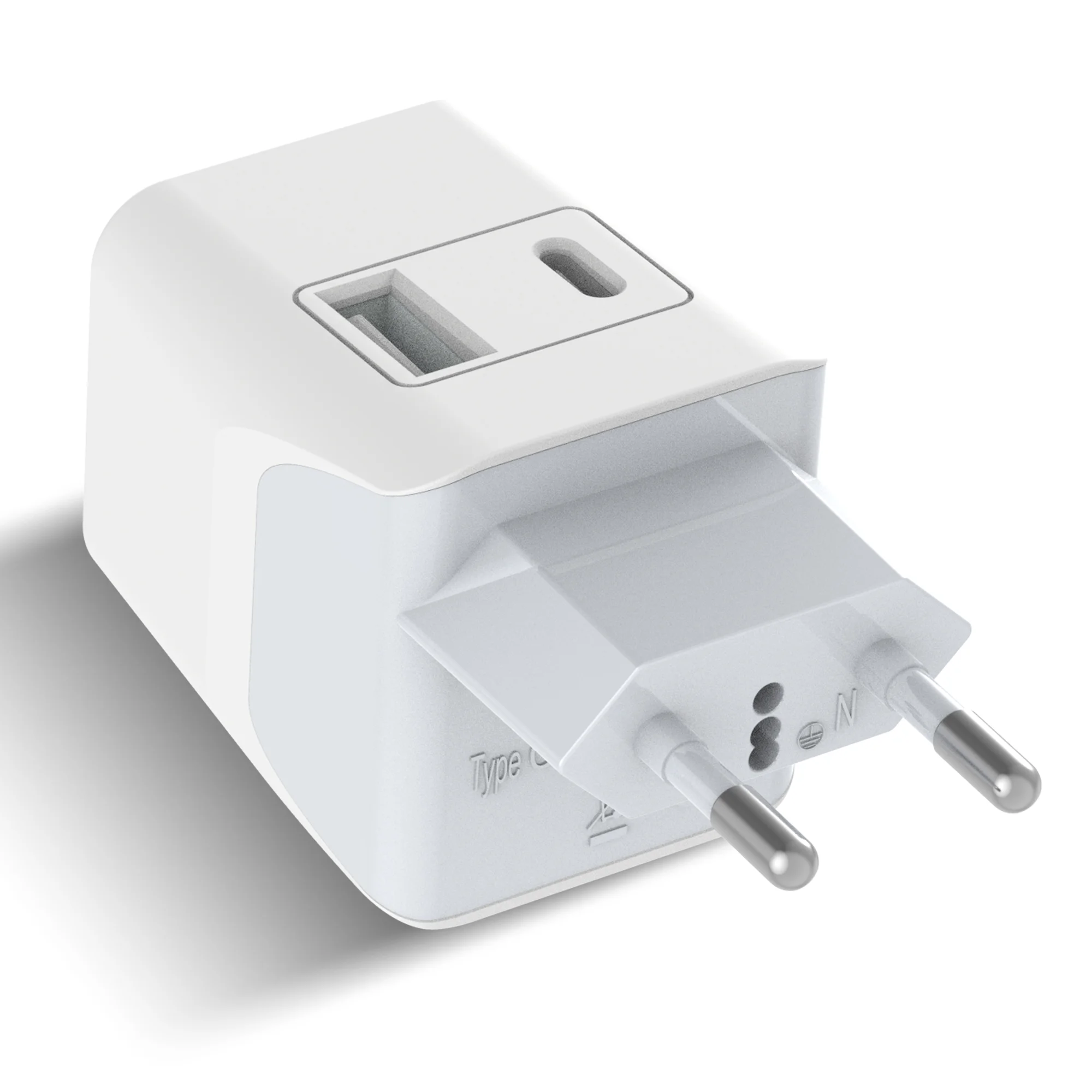 India to Europe travel adapter – Type C – 1 USB-A & 1 USB-C – 3 in 1 Plug – CE & RoHS certified – CTUD-9C